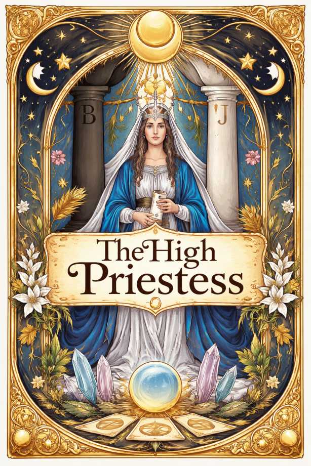 The High Priestess is one of the most mysterious and powerful cards in the Tarot. It represents intuition, hidden knowledge, and inner wisdom that cannot be seen with the eyes but deeply felt within.